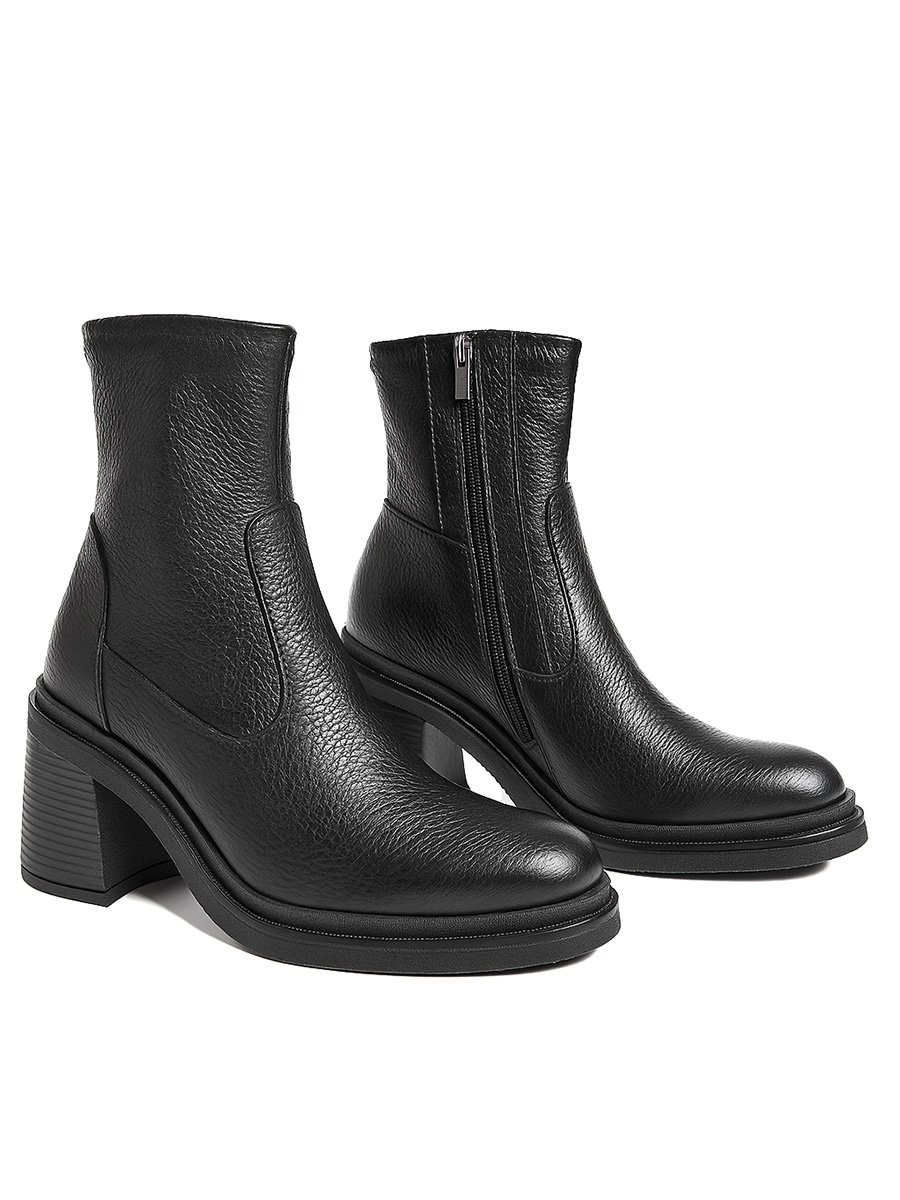 Botki Seravia to idealne połączenie elegancji i wygody. Wykonane z wysokiej jakości skóry naturalnej licowej typu „groszek” oraz elastycznej lycry, doskonale dopasowują się do stopy, gwarantując komfort przez cały dzień. Obcas typu słupek o wysokości 7 cm pięknie wysmukla sylwetkę, a jednocześnie zapewnia stabilność i wygodę. Dzięki temu botki sprawdzą się zarówno podczas codziennych obowiązków, jak i w bardziej eleganckich stylizacjach.
