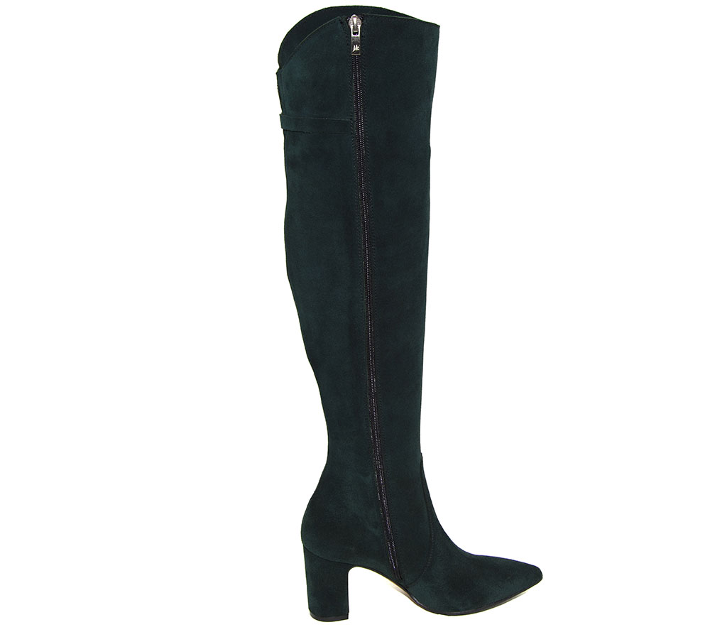 Wysokie kozaki za kolano z paskiem na klamrę. Elegancka podeszwa z owijanym obcasem.