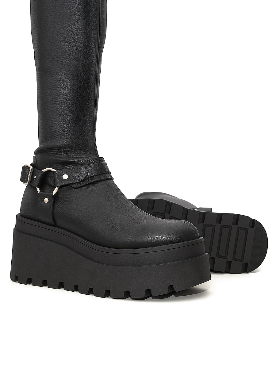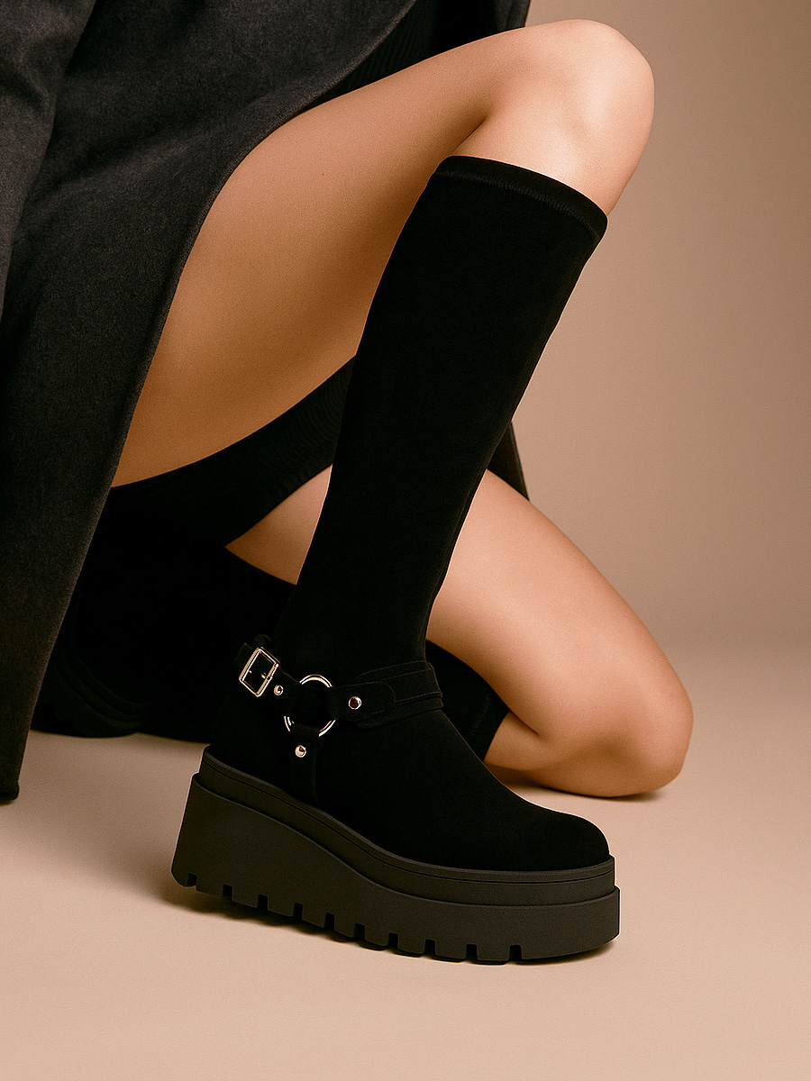 29 września 2024Kozaki na koturnie Brida z pewnością Cię zachwycą, robią wrażenie na wszystkich! Gruba i ciężka podeszwa typu koturna króluje na wybiegach już od jakiegoś czasu. Elastyczna, dopasowana cholewka do kolana to kwintesencja modnej stylizacji. Górna część cholewy to rozciągliwy strecz, który dopasowuje się do łydki i dodatkowo ją podkreśla. Kozaki do wysokości kostki ocieplone delikatnym filcem. Koturna: przód – 5cm, obcas – 8cm
