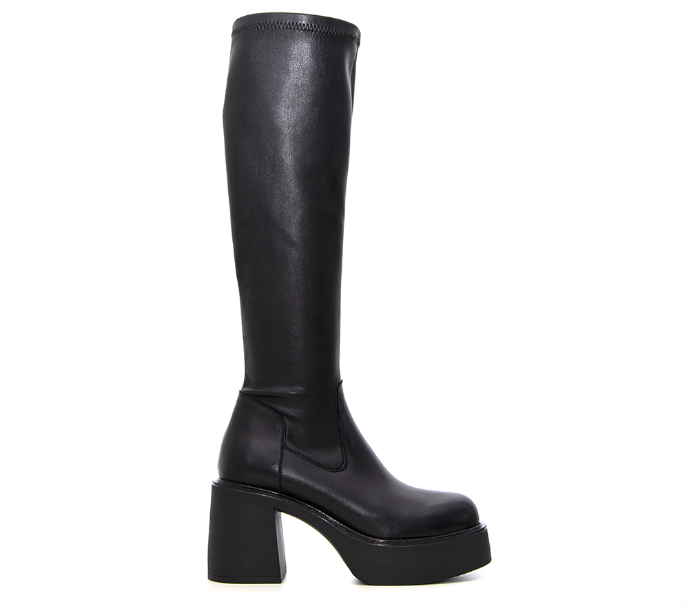 Przyszwa wykonana z naturalnej skóry licowej typu groszek oraz cholewka z lycry optycznie wydłuża i wysmukla nogę.