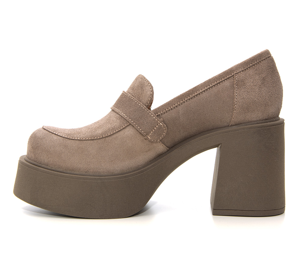 skórzane półbuty damskie na platformie, obcas 8 cm, ebano zamsz
