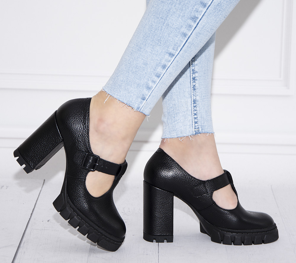 Wygodna podeszwa oraz stabilny obcas 9 cm owinięty skórą. Pasek z elegancką klamrą dodatkowo stabilizuje nogę.