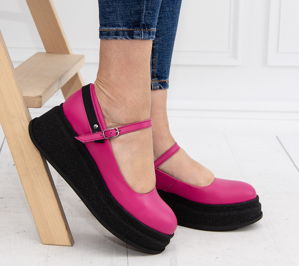 Półbuty skórzane Skoni fuksja lico
