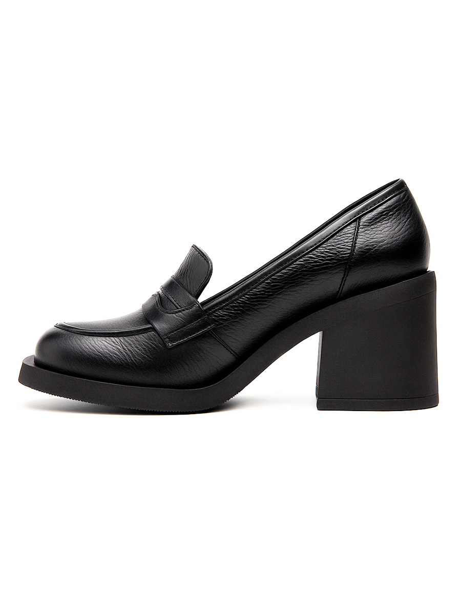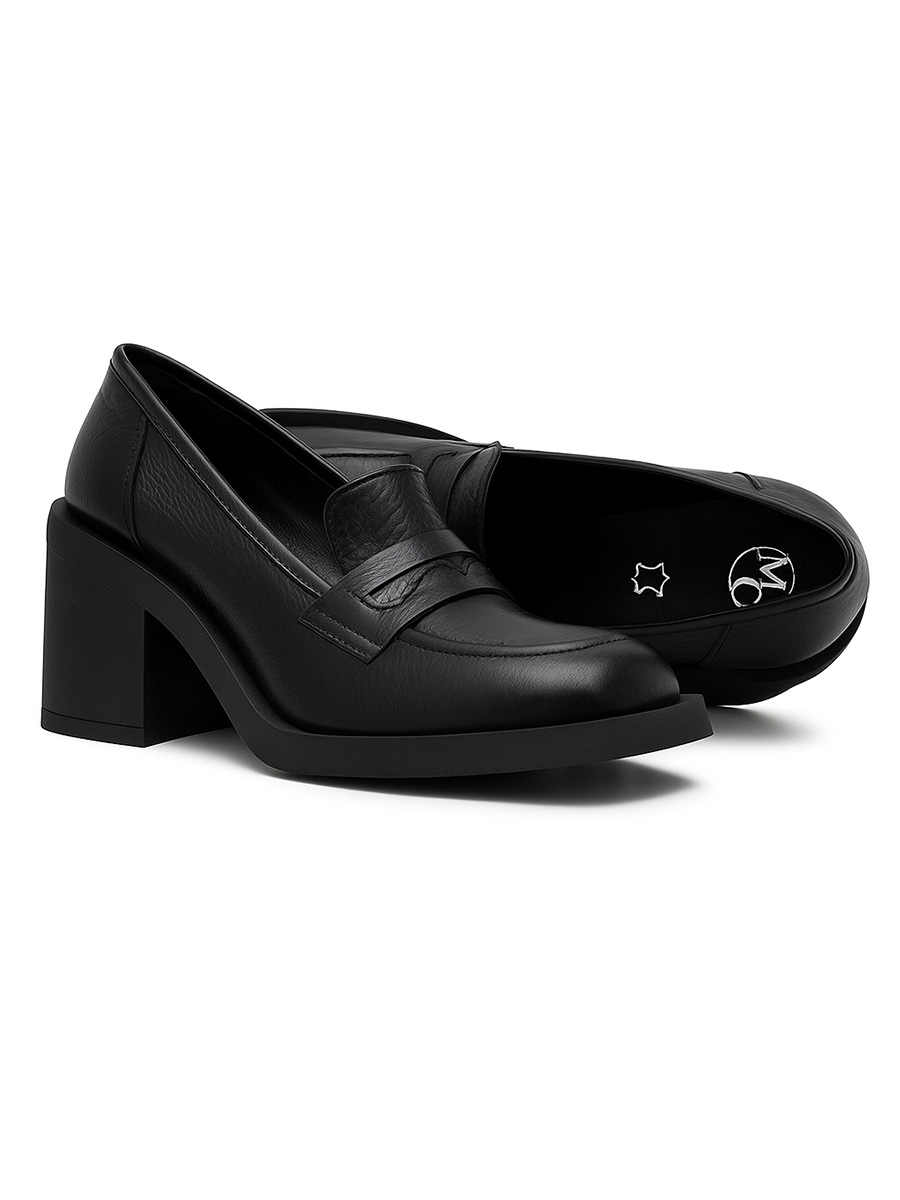 Skórzane półbuty na słupku Nebula czarny groszek