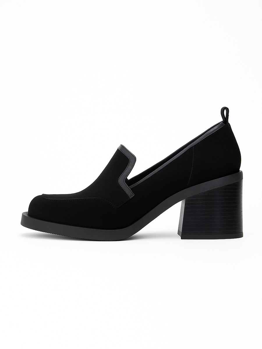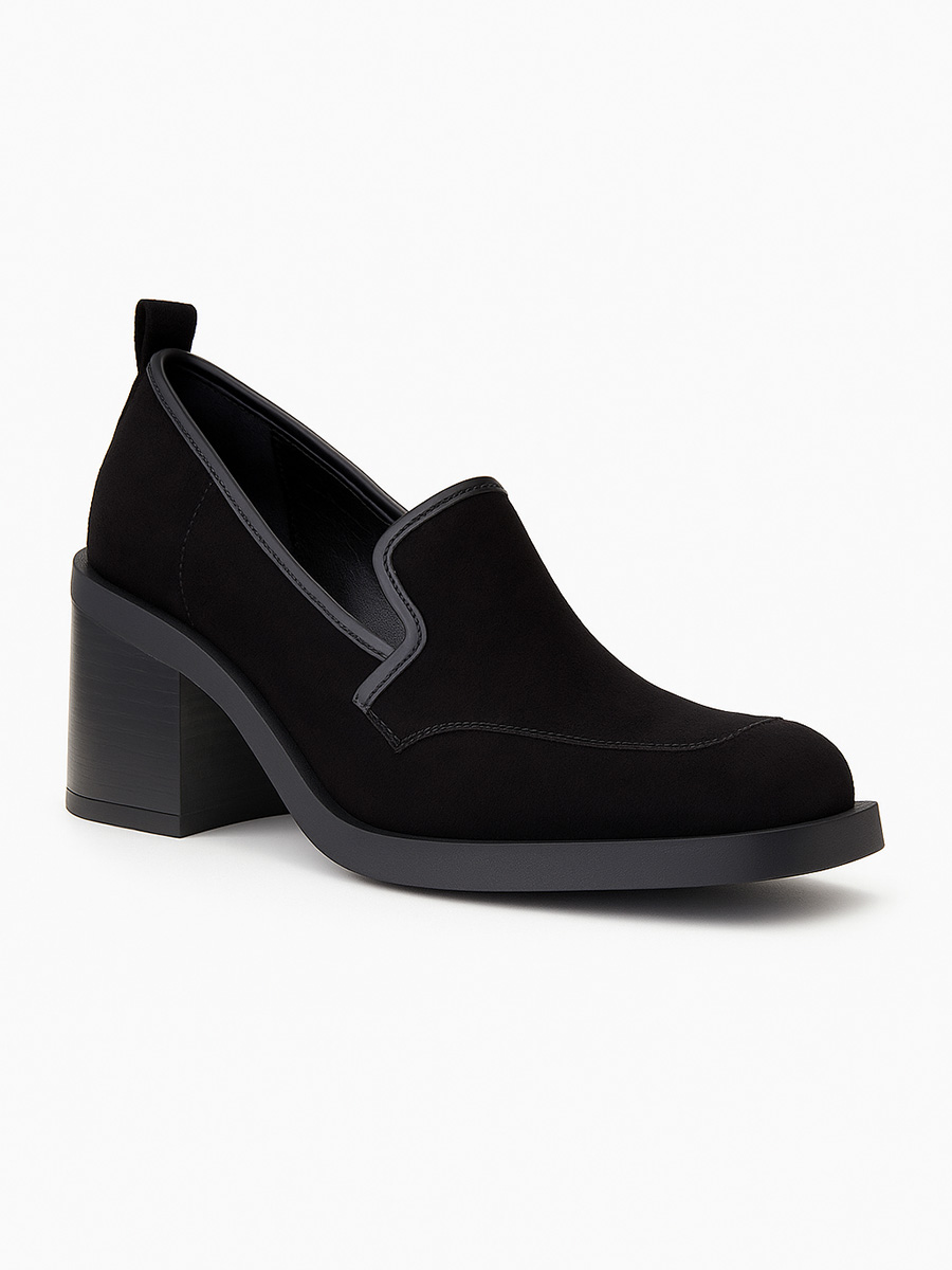 Skórzane półbuty na słupku Francesca czarny zamsz