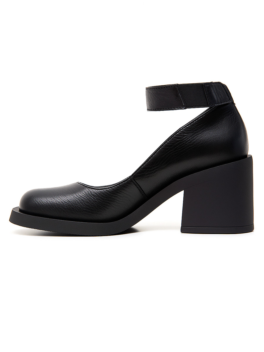 Skórzane półbuty na słupku Laure v2 czarny groszek