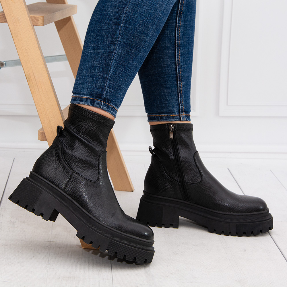 18 sierpnia 2024Trapery skórzane Donore to doskonały wybór dla kobiet, które cenią sobie połączenie stylu i komfortu. Buty te wyróżniają się nowoczesnym designem oraz wysoką jakością wykonania. Skóra, z której zostały wykonane, zapewnia trwałość i odpowiednią wentylację, co jest istotne w codziennym użytkowaniu. Szczególnym atutem tych traperów jest gruba podeszwa, która nie tylko dodaje im charakteru, ale również zapewnia dobrą amortyzację i wygodę podczas chodzenia. Obcas – 6cm podkreśla kobiecą sylwetkę, dodając jednocześnie kilku centymetrów wzrostu. Cholewka powyżej kostki posiada strecz dzięki czemu idealnie dopasują się do nogi.